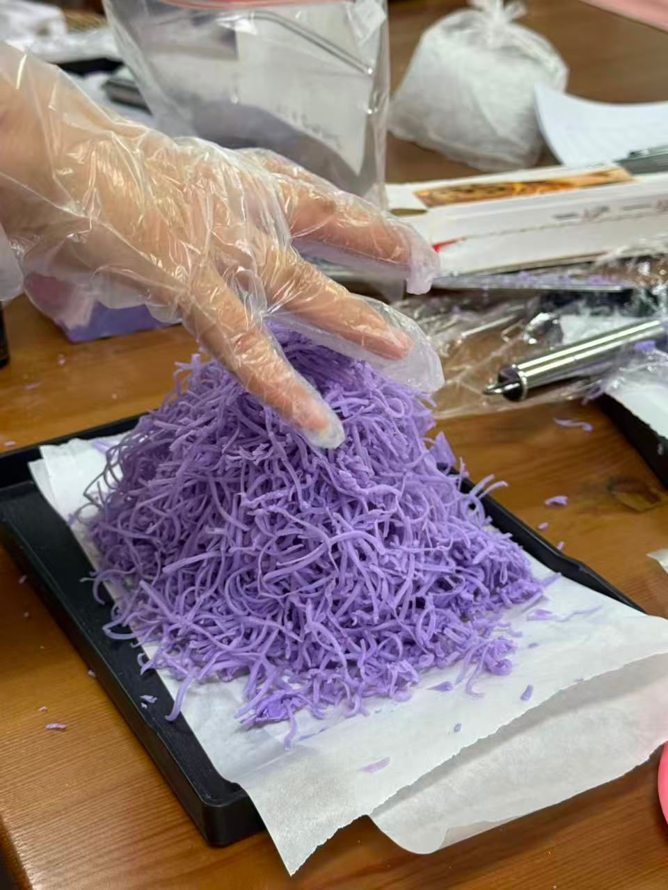 活动伊始,参加活动的教职工签到并领取专属材料包,现场陈列的天然皂基、植物精油等原料迅速点燃了大家的创作热情。在简短的安全说明后,手工老师通过对比手工皂与工业皂的差异,深入浅出地讲解了葡萄成分的抗氧化与保湿功效,强调天然制品对健康与环境的双重意义。
