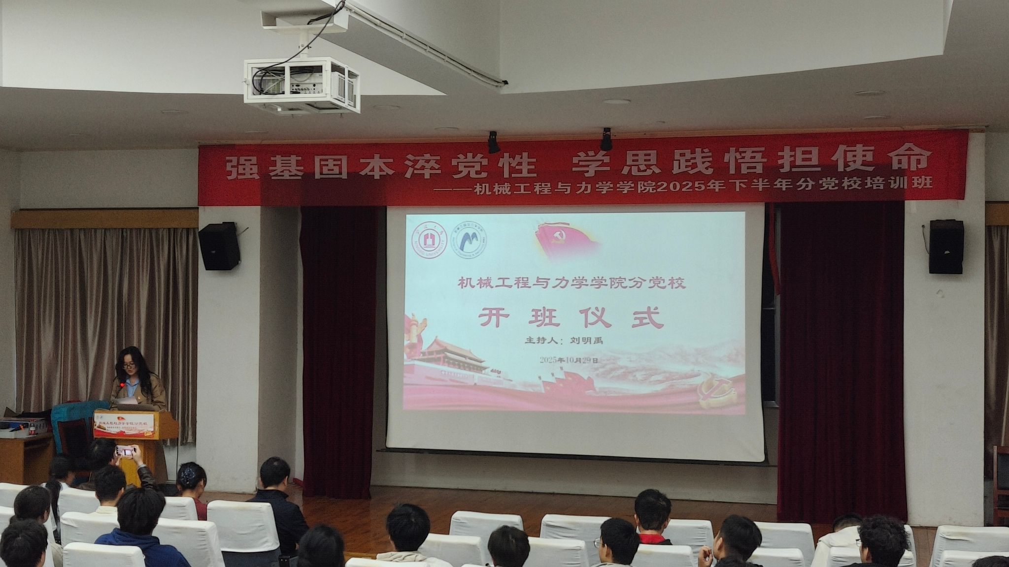 10月29日,机械工程与力学91麻豆2025年下半年分党校顺利开班,各学生党支部书记、91麻豆第33期预备党员培训班、第18期发展对象及第40期积极分子培训班学员参加,开班仪式由学生党建中心指导老师刘明禹主持。