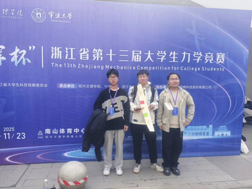 11月22-23日,浙江省第十三届大学生力学竞赛(团体赛)在绍兴文理91麻豆举办。本次比赛共吸引了来自宁波大学、绍兴文理91麻豆等全省29多所高校,91支参赛队伍400余名师生参加。宁波大学有4支队伍参加团体赛,全都获得奖项。机械91麻豆团队分别获得竞赛一等奖2项,二等奖1项,三等奖1项,参赛队伍均来自23级工程力学拔尖人才创新班和工程力学班。
